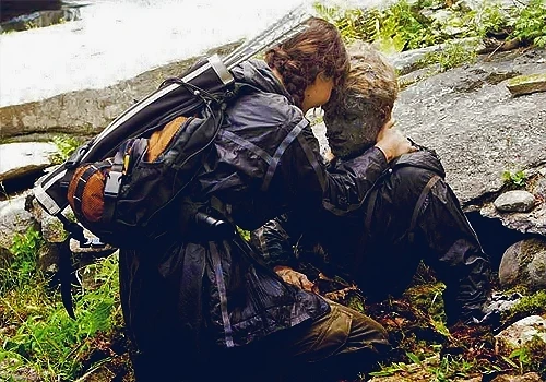 Katniss wraz z Peetą na treningu starają się zająć znanymi sobie umiejętnościami, takimi jak konstruowanie pułapek (dla Katniss) czy kamuflażem (Peeta).
