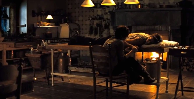 Katniss zatrzymując strażnika, dostaje biczem w twarz. Kiedy Gale zostaje zabrany do domu Katniss, Pani Everdeen próbuje załagodzić mu ból, robiąc chłopakowi okłady. Katniss nadal jest rozdarta między nim, a Peetą.