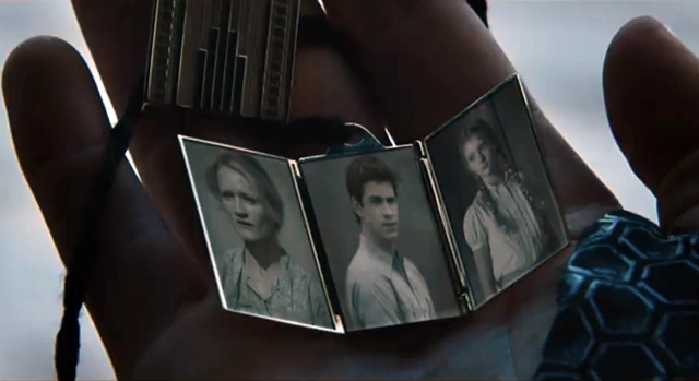 Od Peety dostaje perłę i naszyjnik ze zdjęciami trzech najbliższych jej osób: Gale'a, jej mamy i Prim. W Kosogłosie perła staje się dla niej najbliższym przedmiotem. Dostaje również łuk i strzały od Beetee'go. Mają one właściwości mechaniczne i mogą być aktywowane tylko głosem panny Everdeen.