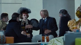 Haymitch rozmawiający z potencjalnymi sponsorami.